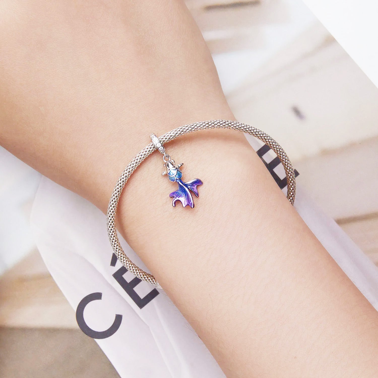 Dive into the beauty of the ocean with this exquisite set of five 925 sterling silver charms from JR Fashion Accessories. Each pendant is intricately designed to capture the magic of the sea, featuring enchanting fish and mermaid tail motifs. Crafted from high-quality, hypoallergenic sterling silver, these charms are perfect for creating custom necklaces, bracelets, or anklets. The vibrant enamel details in shades of blue and purple add a splash of color, making them a standout addition to any jewelry collection. Ideal for jewelry designers, hobbyists, and brands looking for unique, high-quality components.