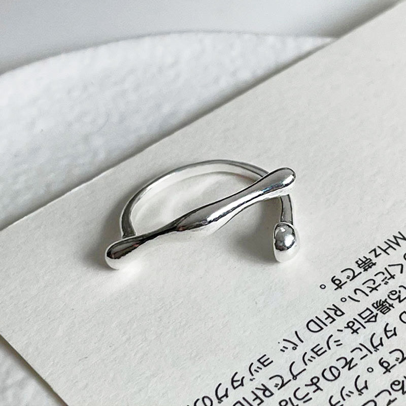 - Detailed view of the irregular twisted design sterling silver ring from the collection.