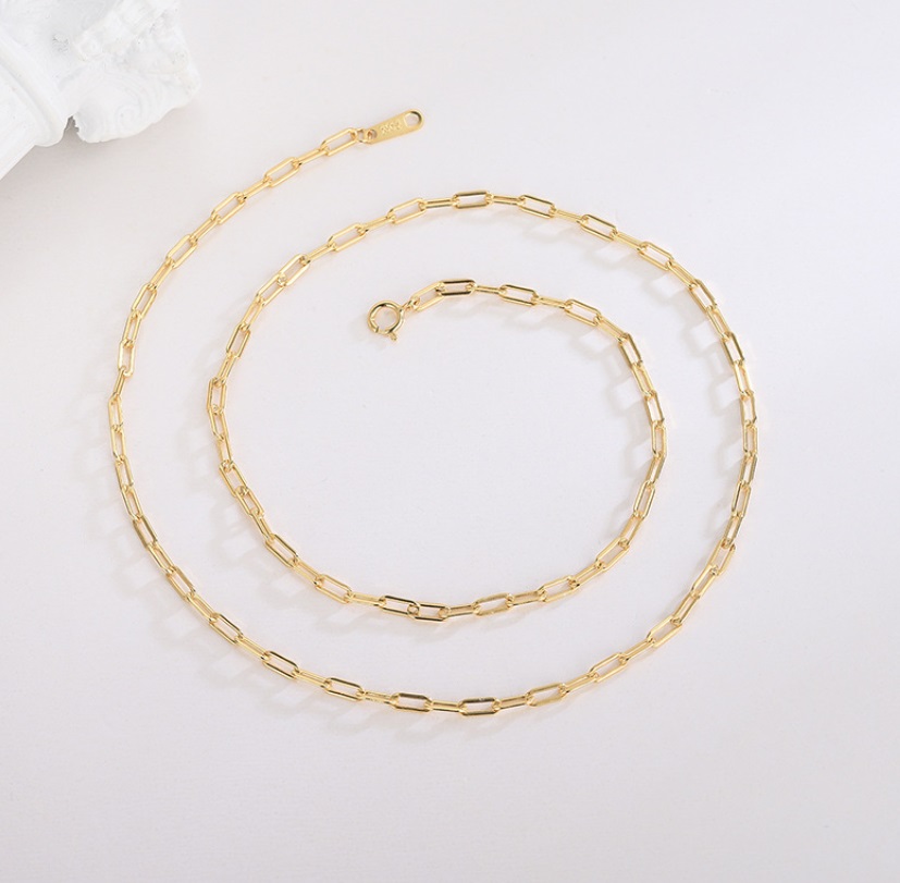 - Versatile 925 sterling silver paper clip chain, suitable as a necklace or bracelet, with a radiant 18k gold plating.