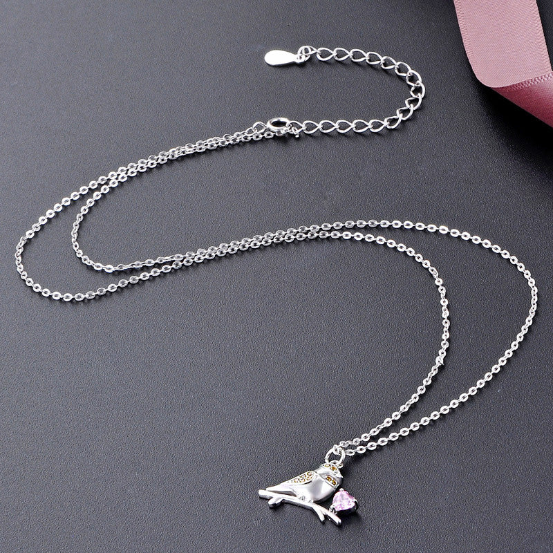 925 Sterling Silver Pink Heart Zircon Sparrow Bird Pendant Choker Necklaces (Set of 5) - Custom Jewelry Manufacturing