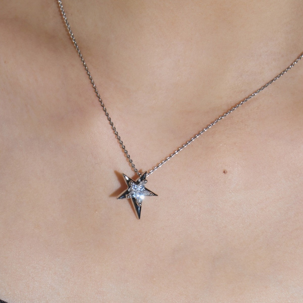 Embrace a touch of modern celestial charm with the Irregular Star Pendant Necklace. This stylish and eye-catching piece features a unique asymmetrical five-pointed star design, beautifully accented with sparkling zircon stones. It masterfully blends playful charm with refined brilliance, making it a chic and essential addition to any contemporary jewelry collection.