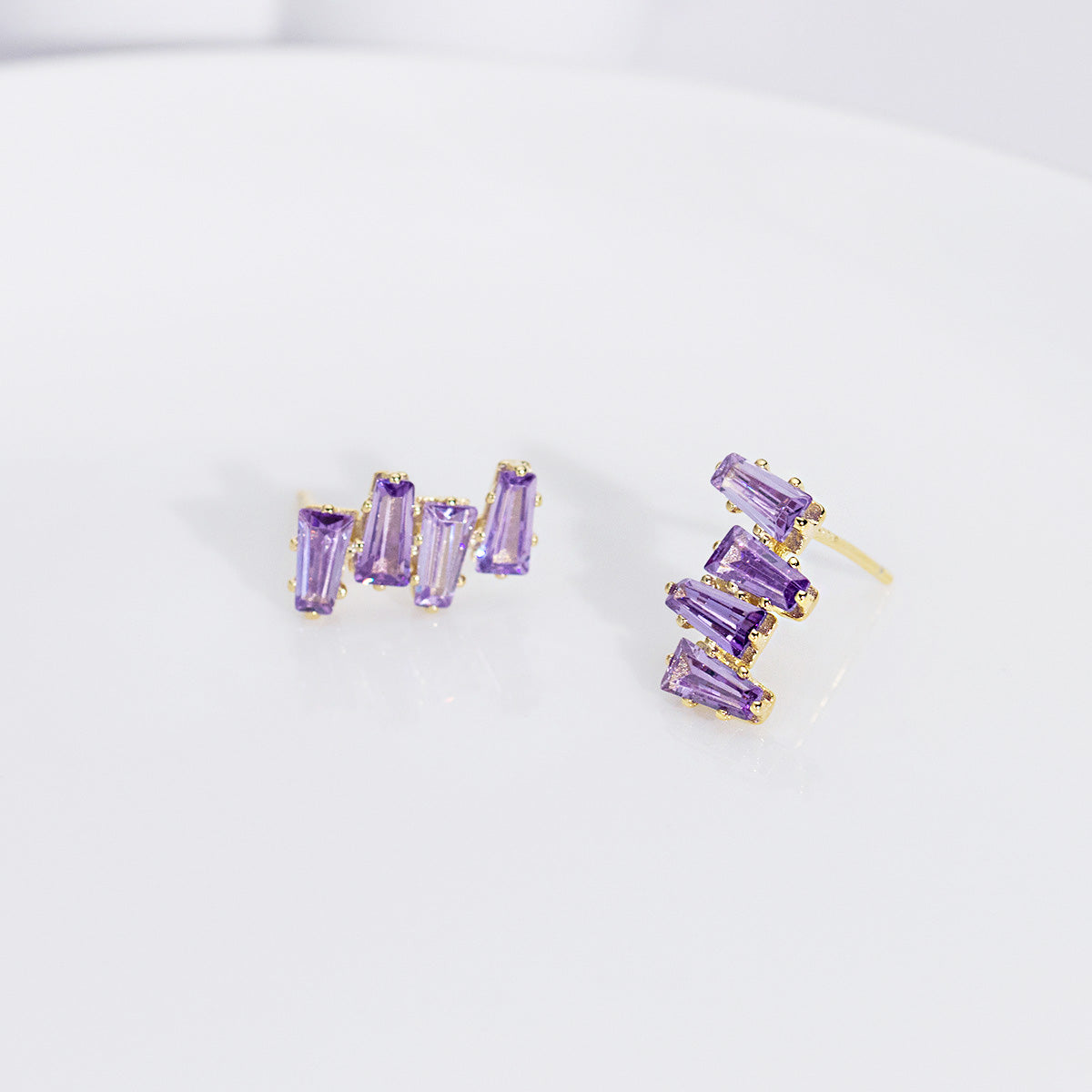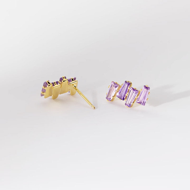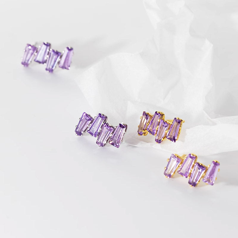 Wholesale 925 Sterling Silver Purple Crystal Jagged Baguette Stud Earrings (5 Pairs) - Custom Jewelry Manufacturing