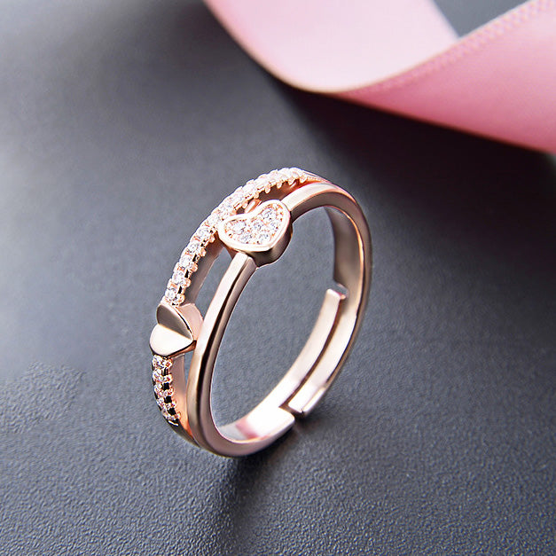 Elegant Rose Gold Plated Heart Rings with Sparkling CZ