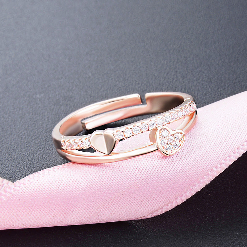 925 Sterling Silver Rose Gold Double Layered Heart CZ Opening Ring Set of 5 - Custom Jewelry Manufacturing