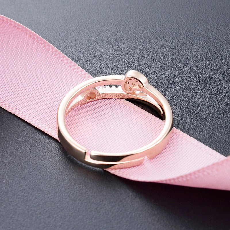 A single rose gold heart ring with brilliant diamond-like accents.