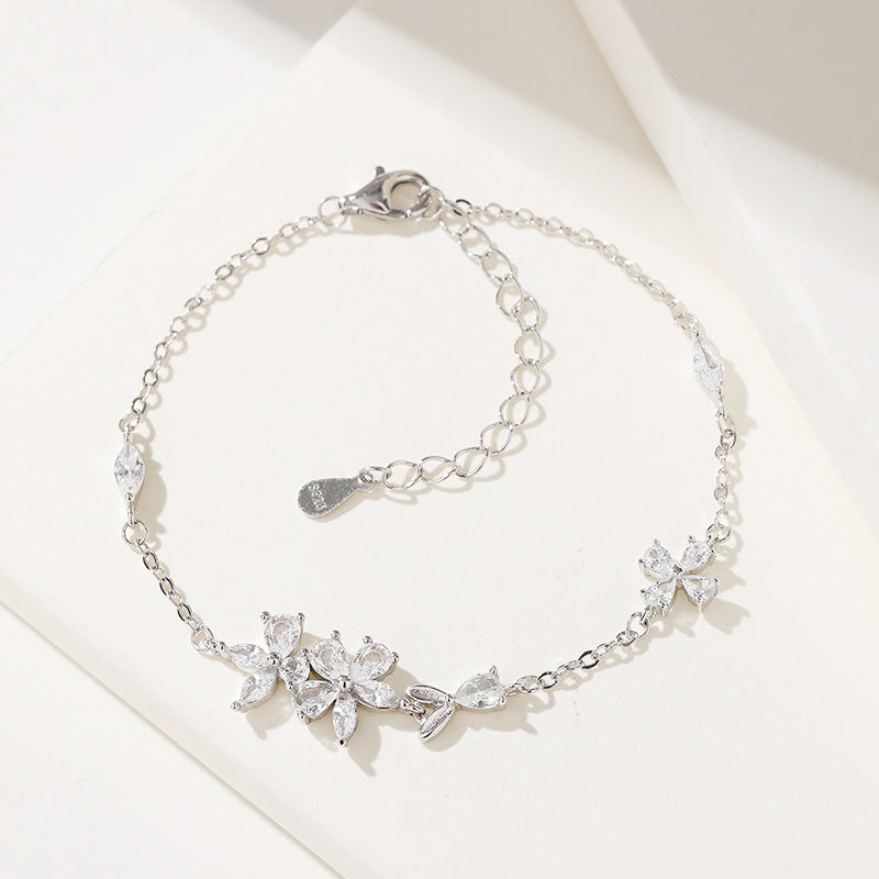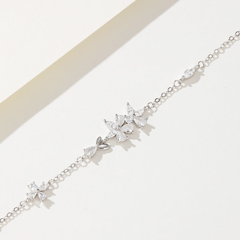 - The sterling silver floral bracelet shimmering with high-quality crystal zircon stones.