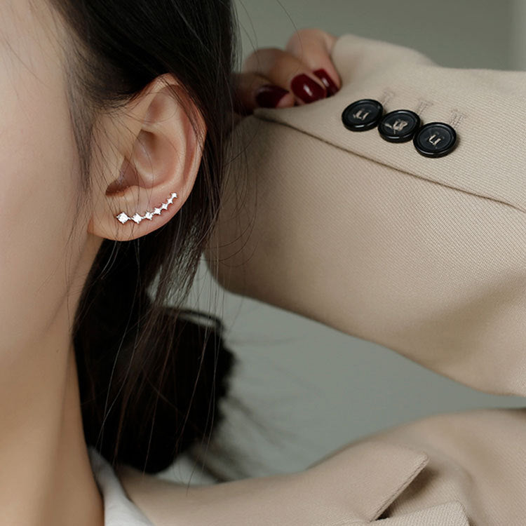 - Product Name: 925 Sterling Silver Seven Sparkling Zircon Climber Stud Earrings