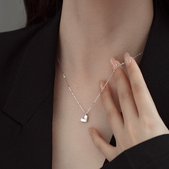 Model wearing the elegant silver heart-shaped pendant necklace.