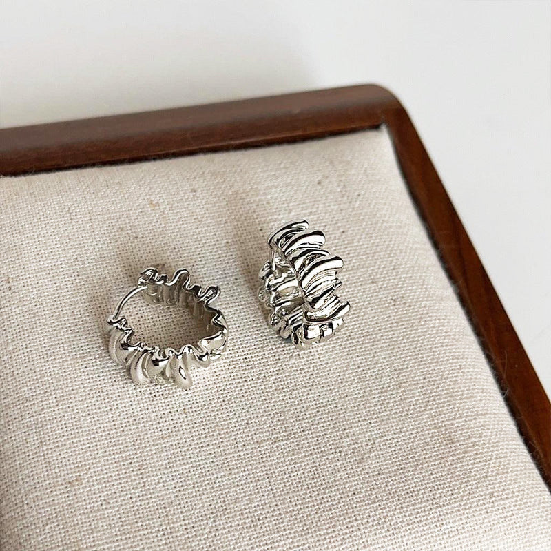 - Product Name: 925 Sterling Silver Simple Irregular Pleated C-Shaped Hoop Earrings
