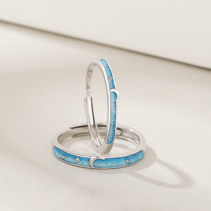 - Product Name: 925 Sterling Silver Star Moon Enamel Adjustable Couple Ring Set