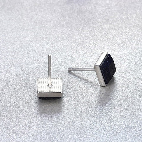 925 Sterling Silver Starry Night Square Purple Sandstone Stud Earrings (5 pairs)