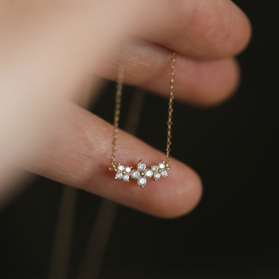 - Pendant: Intricate three-flower design with brilliant zircon stones
