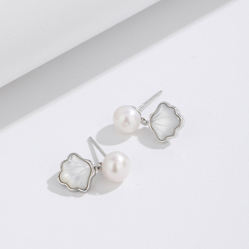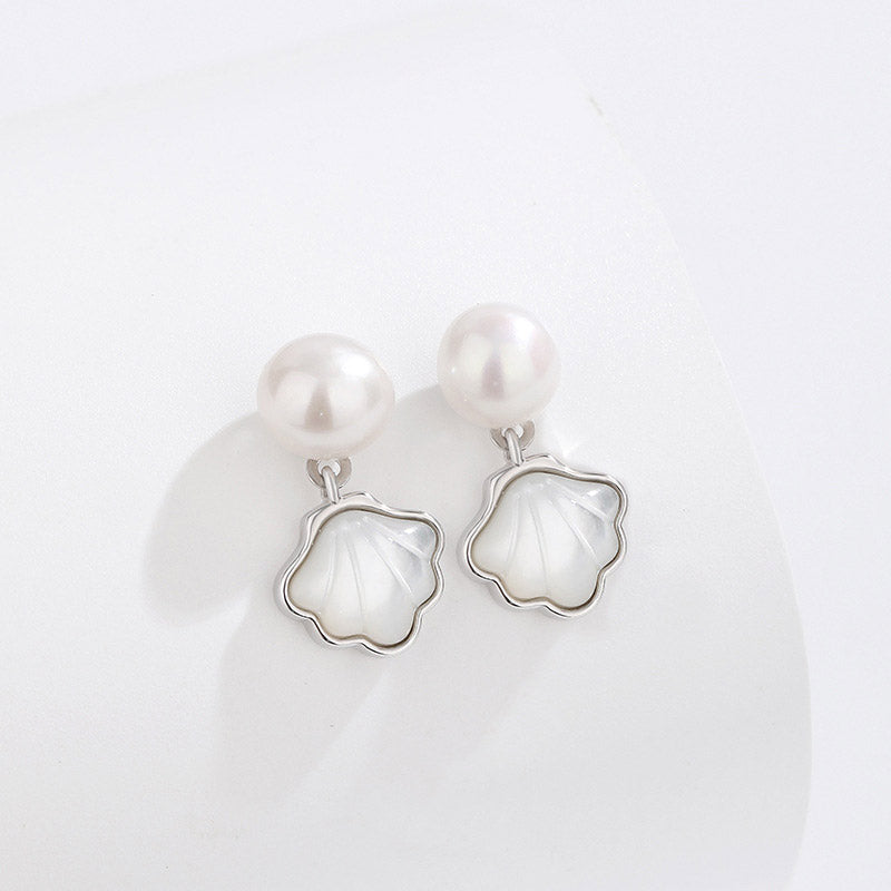 - Product Name: 925 Sterling Silver White Shell Fan-Shaped Freshwater Pearl Drop Earrings