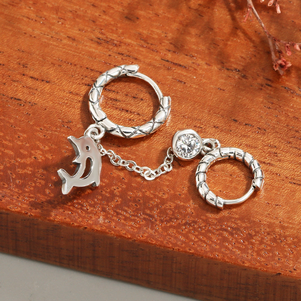 - Product Name: 925 Sterling Silver Vintage Dolphin Double Hoop Chain Earrings