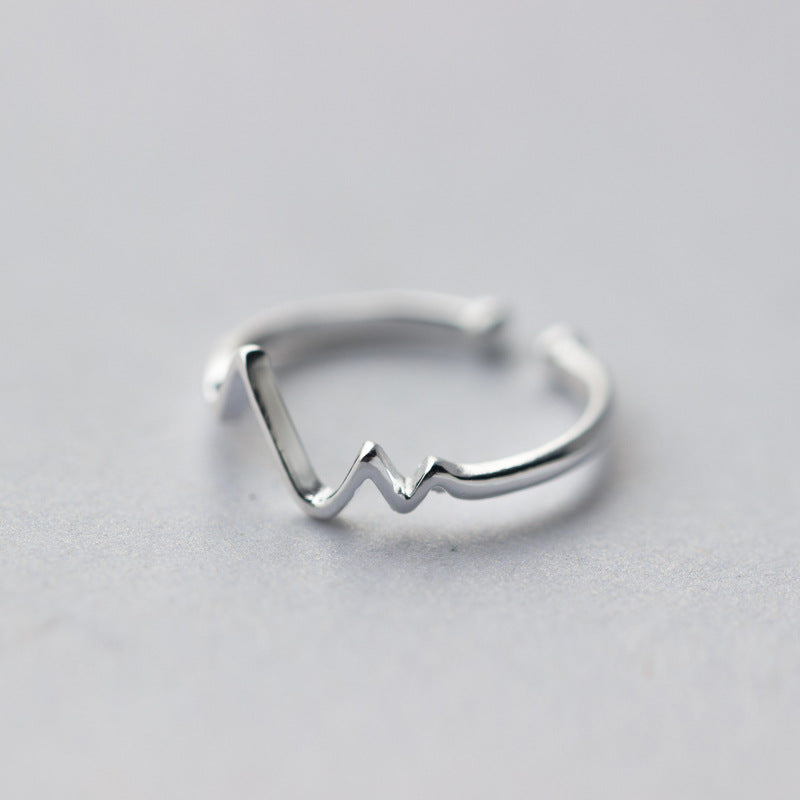 - Detailed view of the 925 sterling silver heartbeat ring's intricate wavy pattern.