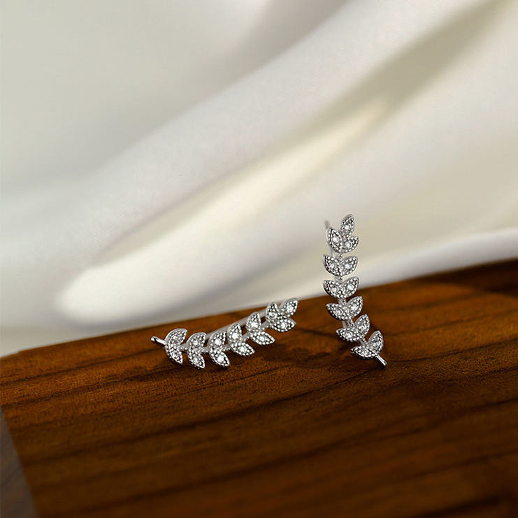 - Product Name: 925 Sterling Silver Zirconia Leaf Stud Earrings