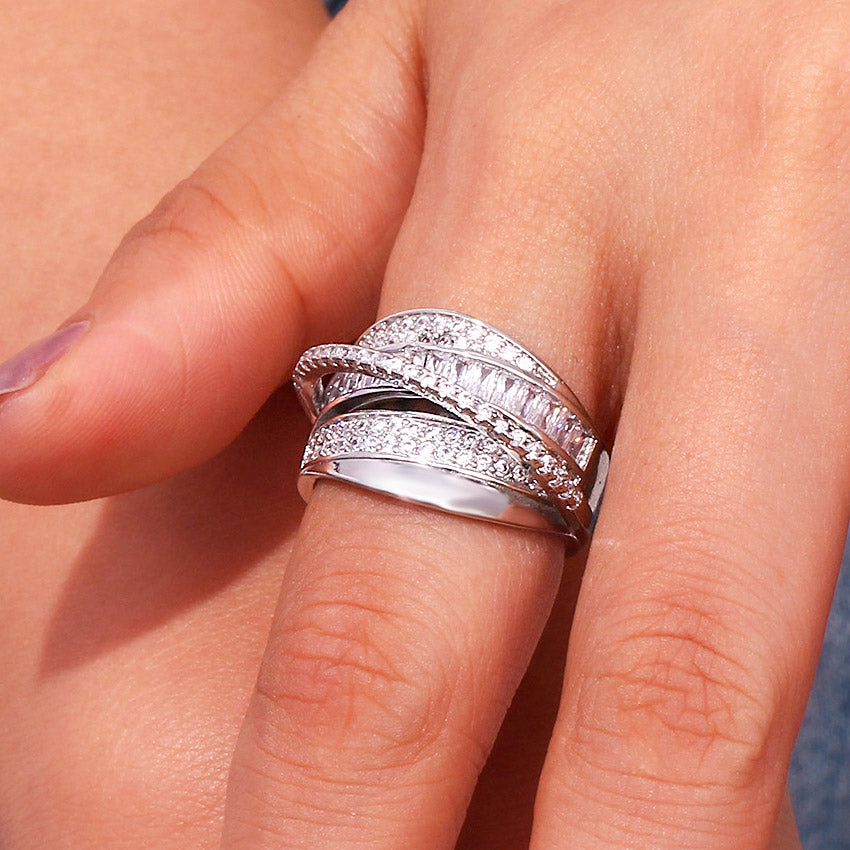 - Luxurious Design: Multi-layered band structure embedded with high-quality cubic zirconia stones for an eye-catching appearance.