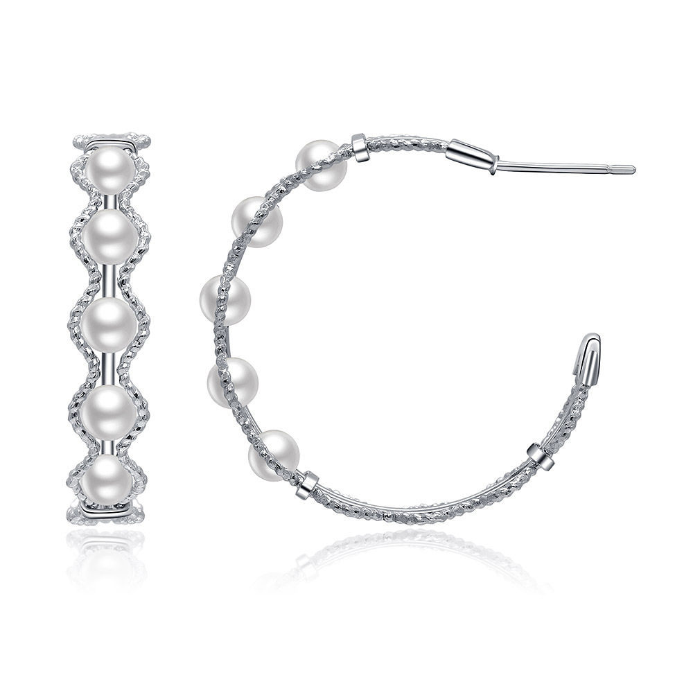 Lightweight Brass Hoops with Rhodium Plating and Pearls