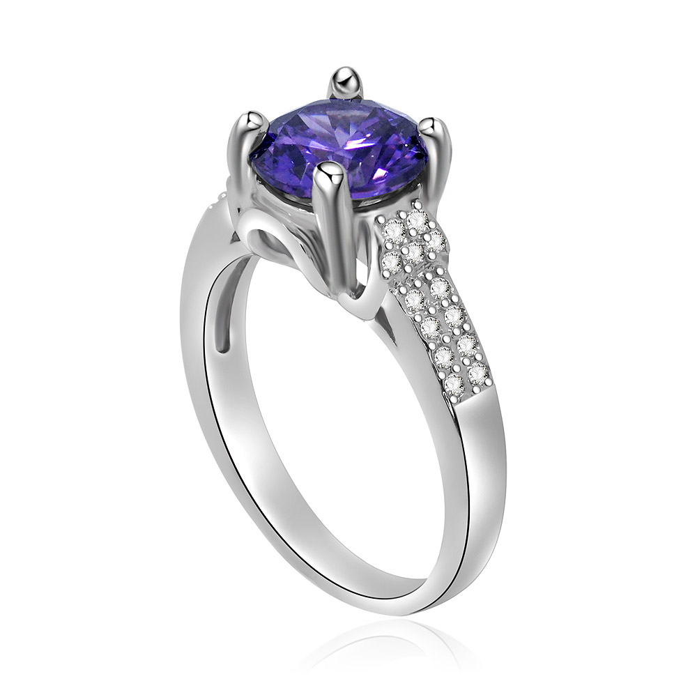 - Side view of the Amethyst and Cubic Zirconia Ring, highlighting the intricate setting of the purple and white stones.