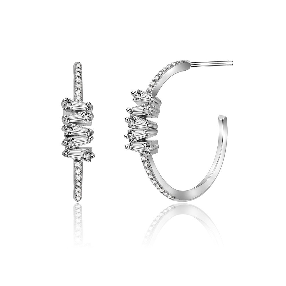 Rhodium Plated with Baguette-Shaped Cubic Zirconia
