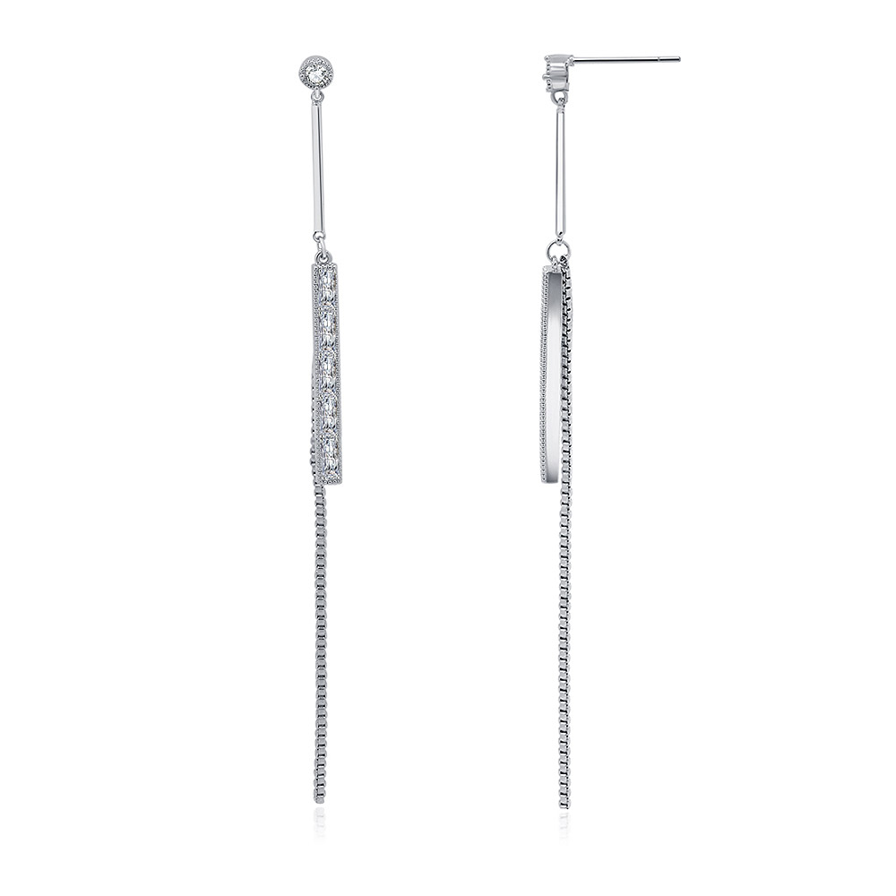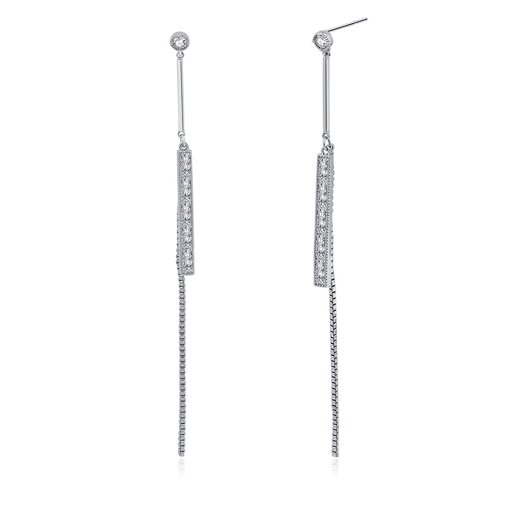 Bar CZ Chain Long Earrings - Custom Jewelry Manufacturing
