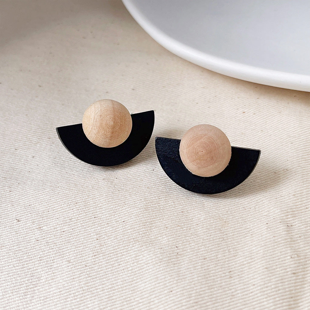 - Product Name: Black and Natural Wood Fan-Shape Stud Earrings (5 Pairs)