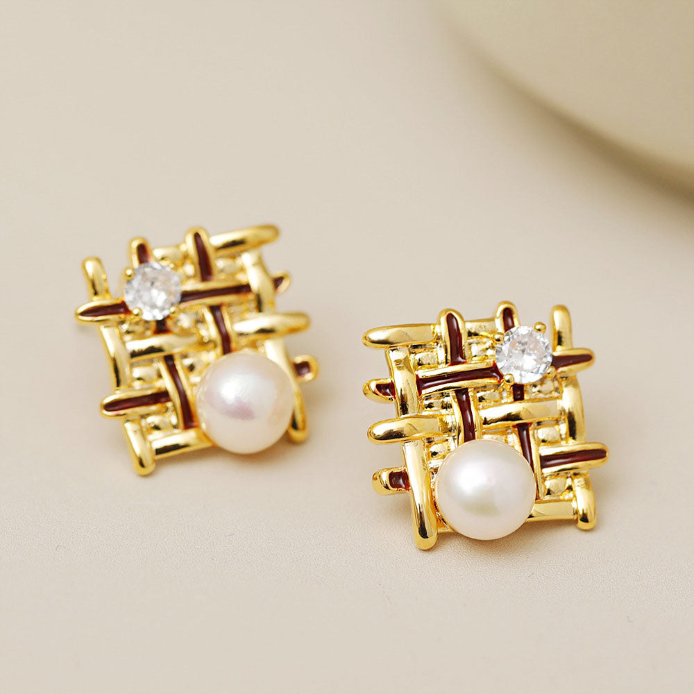 - Product Name: Braided Mesh Pearl Enamel Stud Earrings