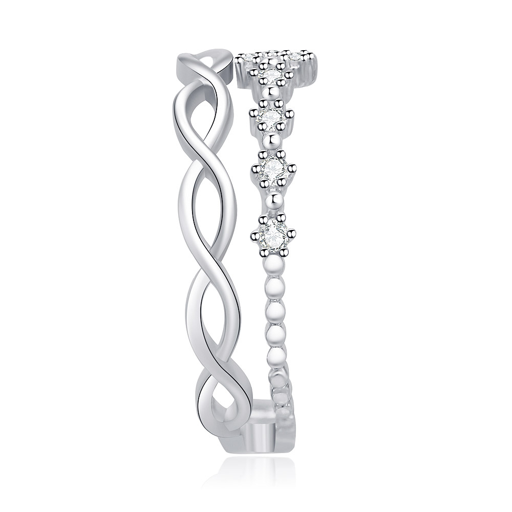 Detailed side view of the Braided Weave Star CZ Ring, highlighting the twisted band and embedded cubic zirconia stones.