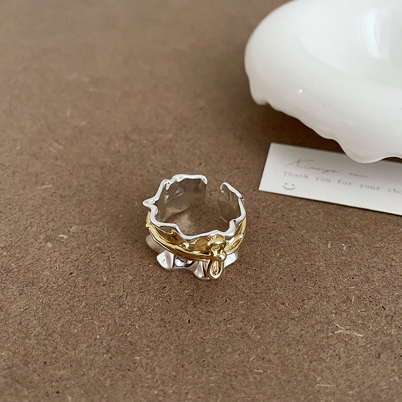 - Brass jewelry wholesale design with a gold-silver two-tone adjustable bow ring.