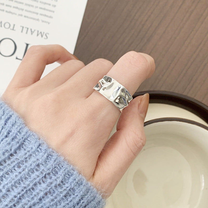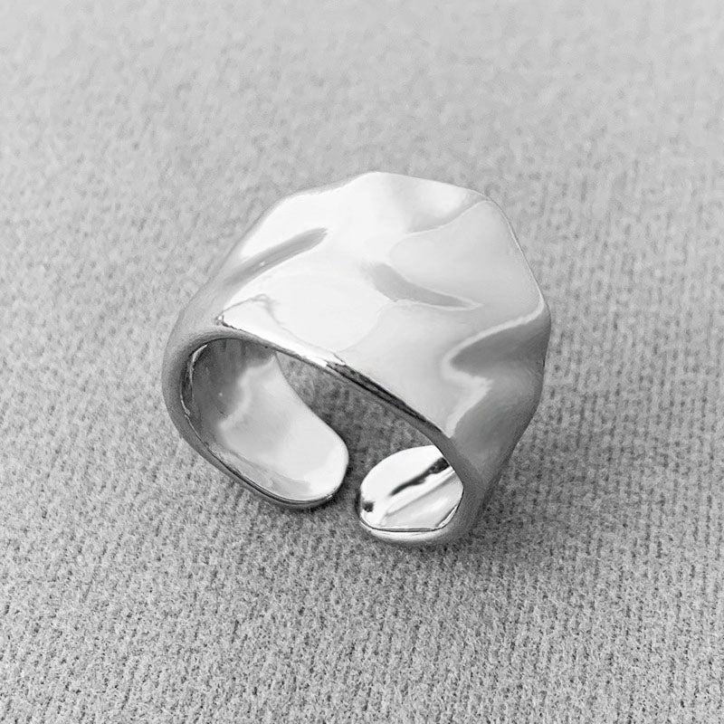 - Unique Design: Each ring boasts an irregularly hammered finish and a geometric shape, ensuring no two are exactly alike.