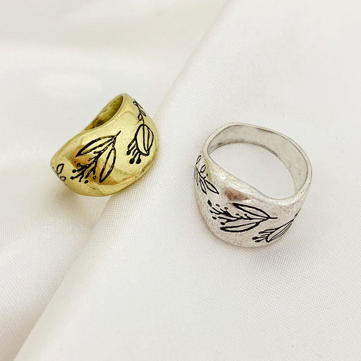 Elegant Engraved Brass Rings in Gold or Silver Finish