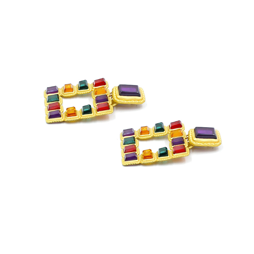 - Detailed view of the Bridal Multi Color Large Earrings showing the square shape and vibrant gemstones.
