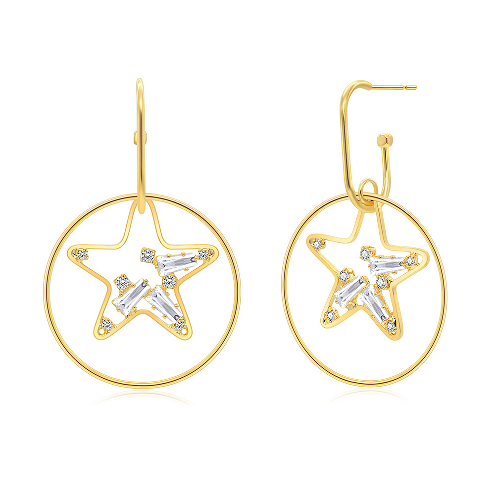 Bright Star In Circle Hook Earrings - Custom Jewelry Manufacturing