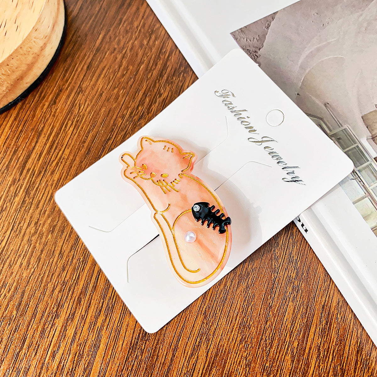 - Product Name: Acetate Cat-Shaped Hair Clips with Fish Bone and Pearl Accents