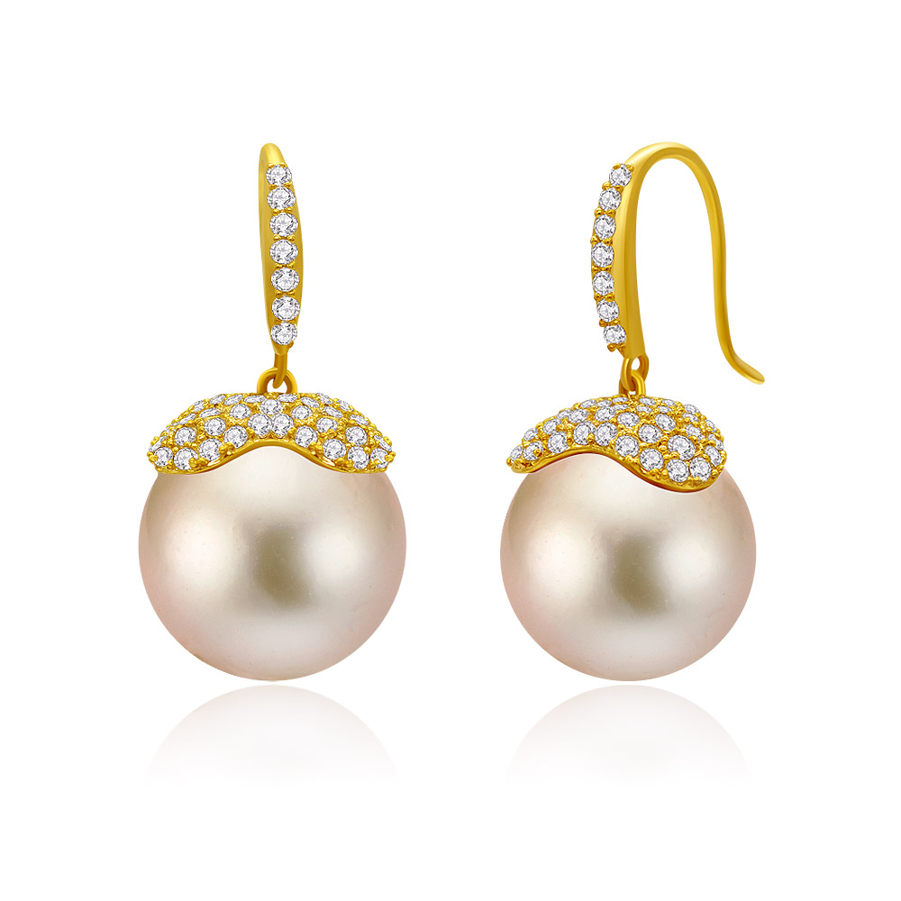 Style Number BEQ07-G-ZP-00710 Jewelry Type Earrings Earring Type Drop & Hook Collection Pearl, Cubic Zirconia Material Brass Plating Gold Closure Fish Wire Fitting White Cubic Zirconia, 10 mm AB Dark Champ Glass Pearl Dimensions 24mm x 12mm (approximate) Sold By Pair *All measurements are approximate and may vary slightly from the listed dimensions.