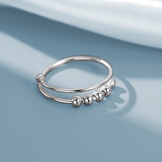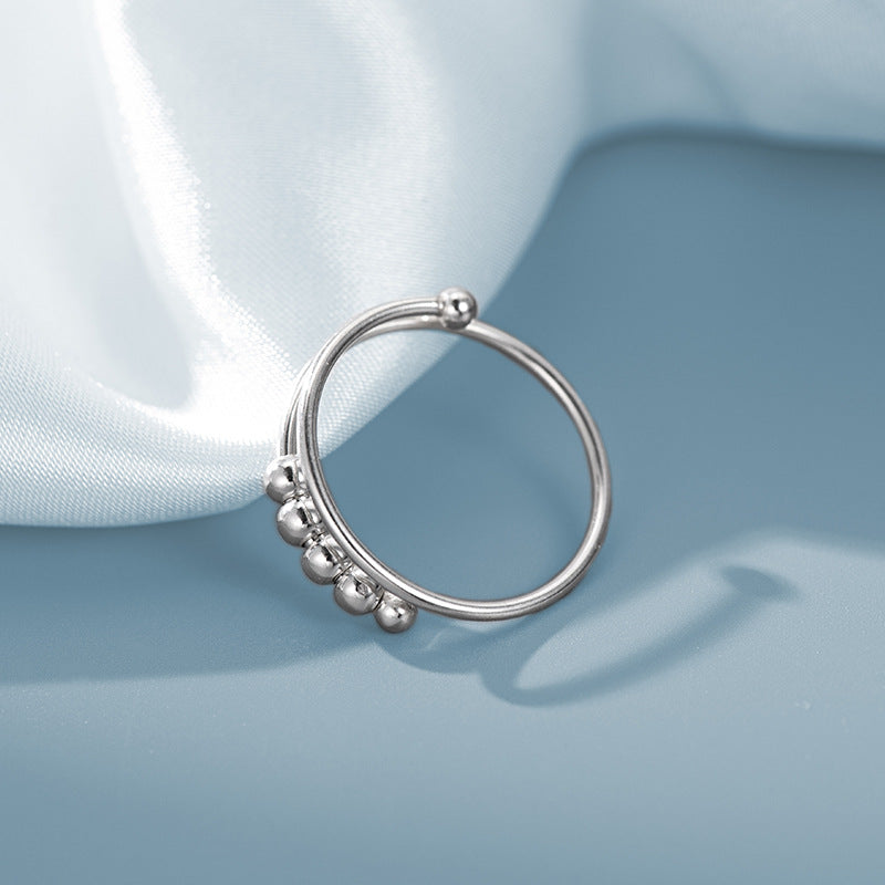 Adjustable Sterling Silver Anxiety Beads Spinning Ring (Set of 5)