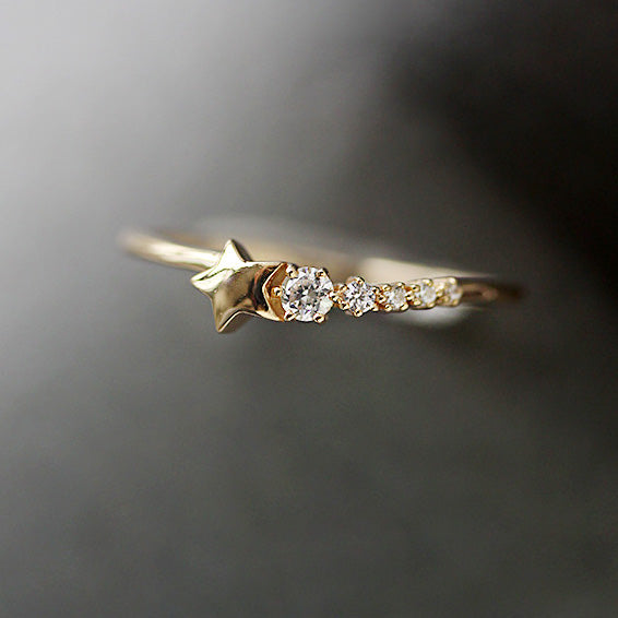 - A close-up view of the gold star ring, highlighting the detailed craftsmanship and diamond design.