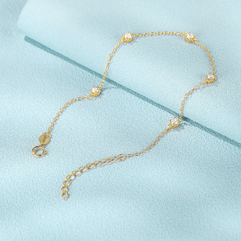 - Product Name: 925 Sterling Silver 5-Zircon Chain Bracelet