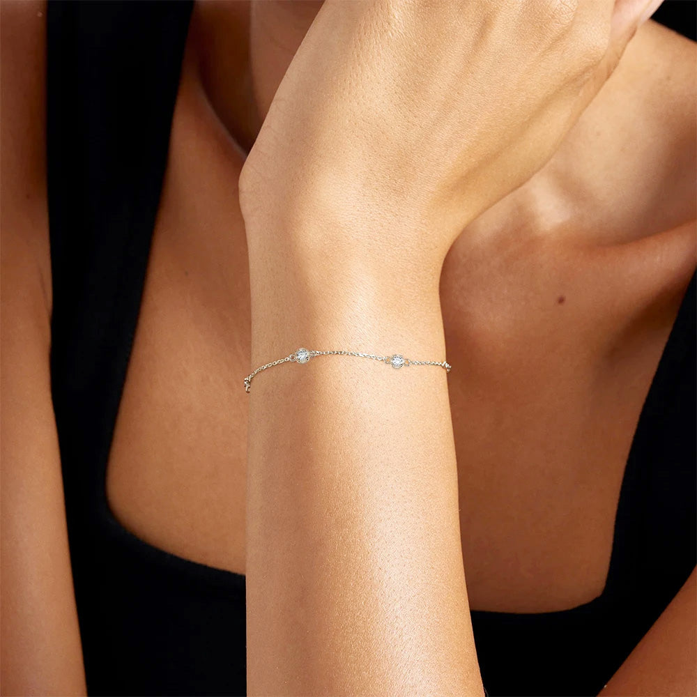 The 925 sterling silver 5-zircon chain bracelet in its classic silver finish.