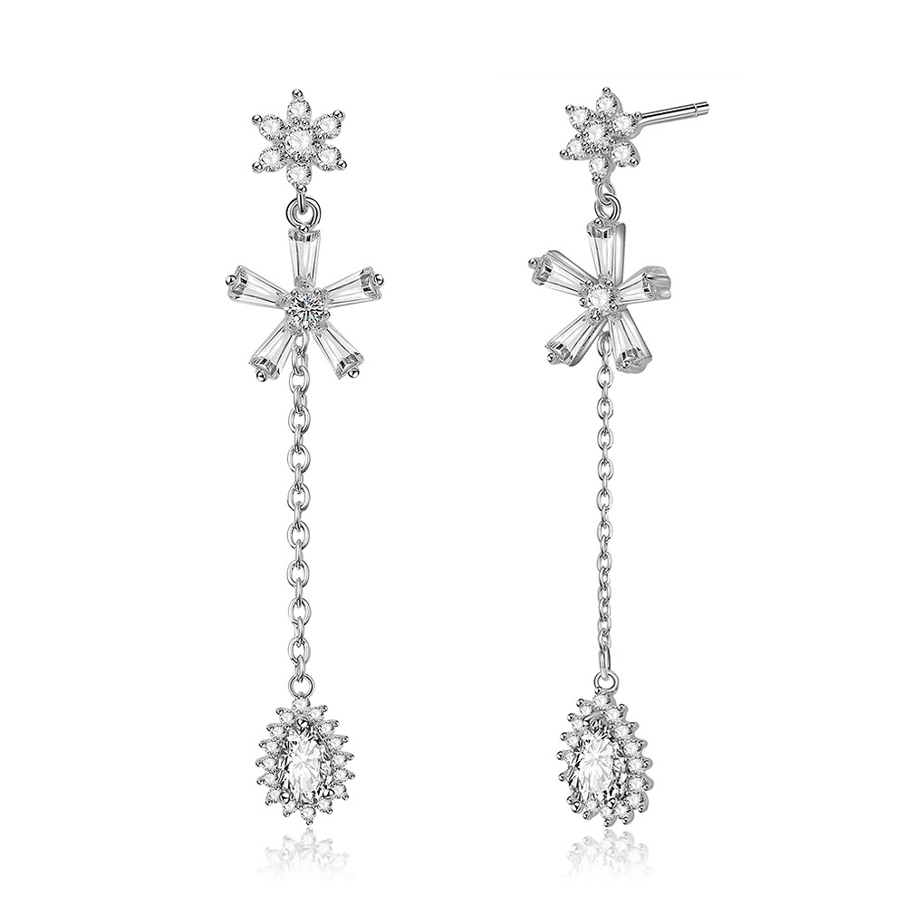Exquisite Rhodium-Plated Earrings with AAA Cubic Zirconia