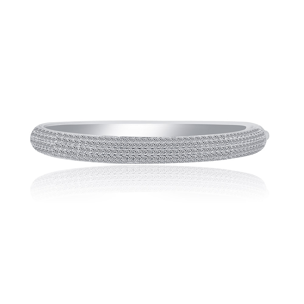 Detailed shot of the cubic zirconia pave setting on the rhodium-plated bangle.