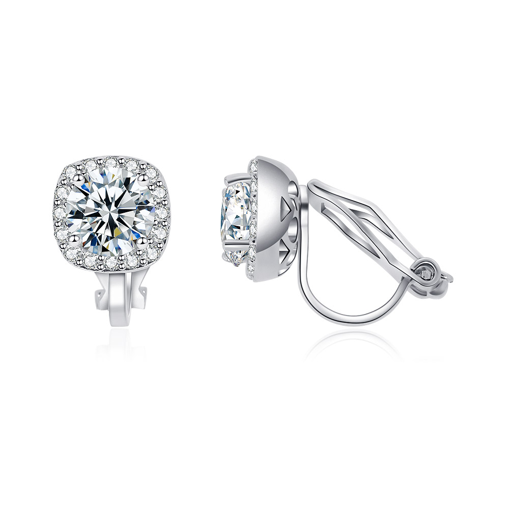 These gorgeous square cubic zirconia clip-on stud earrings offer a timeless and sparkling touch to complete your look. They are an essential addition to any jewelry collection, perfect for topping off both casual and formal outfits. Designed specifically for individuals with non-pierced ears, they also serve as an excellent hypoallergenic option for those with sensitivities to certain materials.