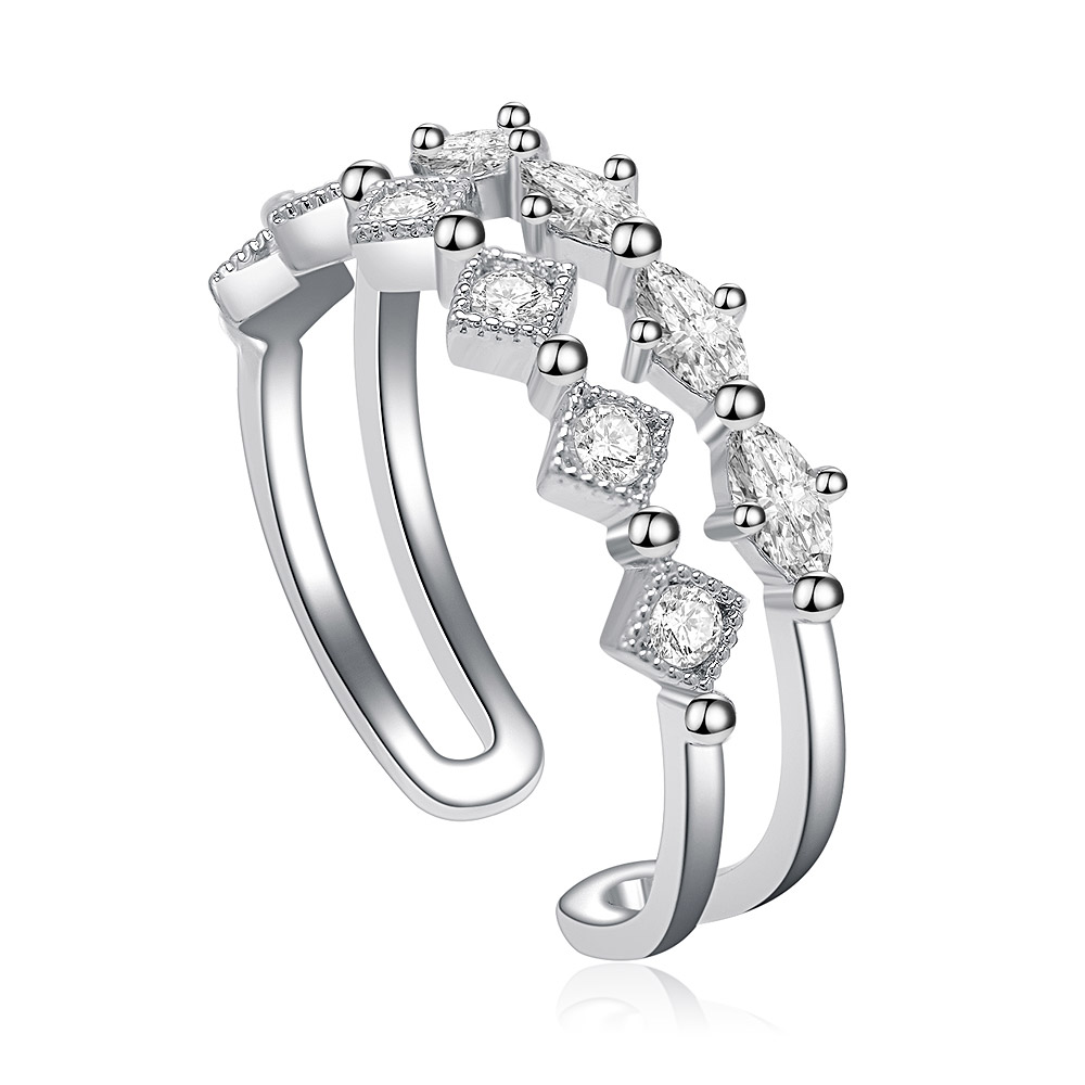 - Side view of the Cluster CZ Adjustable Ring, highlighting the rhodium-plated brass band.