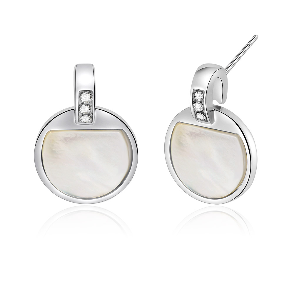 Detailed side view of the Crystal Disc Shell Studs, showing the mother-of-pearl and diamond accents.