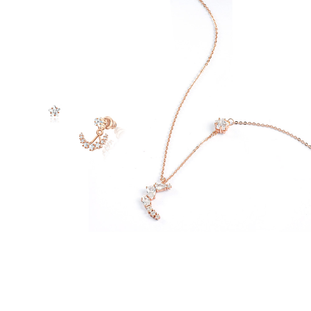 Romantic Rose Gold Plated Moon & Star Jewelry Set with Cubic Zirconia