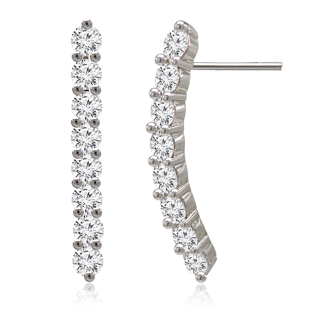 Elevate your style with these exquisitely designed graduating climber earrings. Crafted with a highly polished finish, these Curved Bar Earrings are a perfect choice for a modern, sophisticated look. They are studded with brilliant, round cubic zirconia stones that catch the light beautifully, adding a touch of glamour to any outfit.