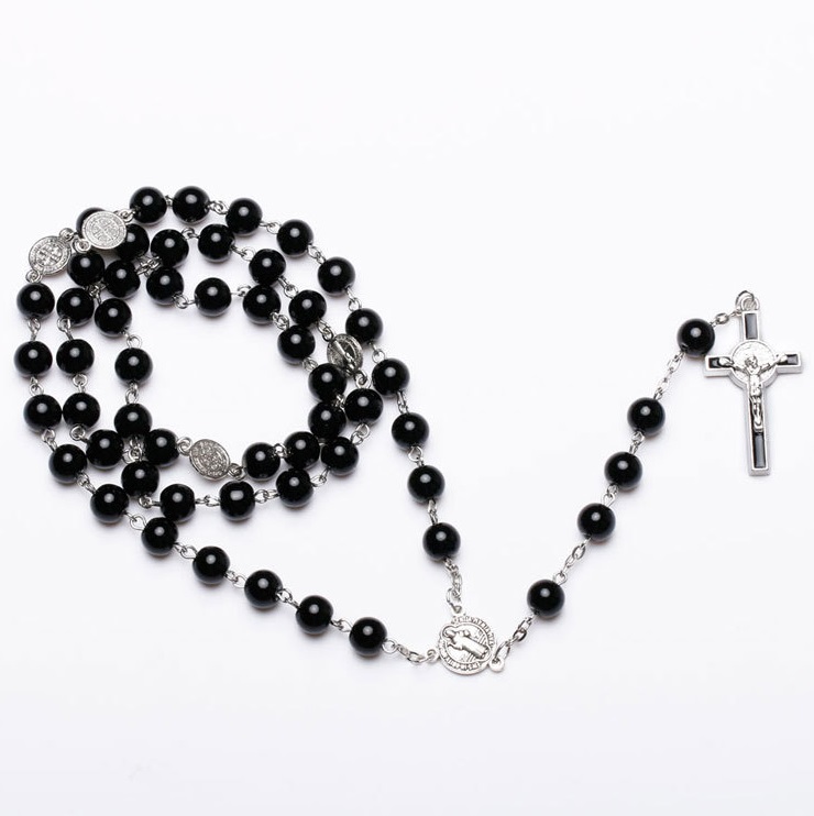 Custom Black Enamel Cross Rosary Necklace - Custom Jewelry Manufacturing