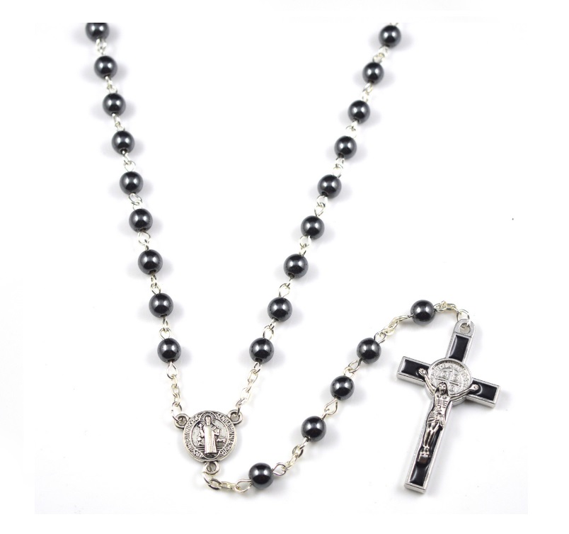 - Product Name: Custom Black Enamel Cross Rosary Necklace