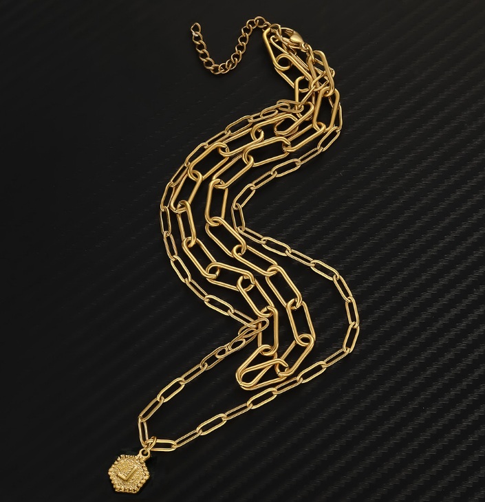 Discover the elegance of our Custom Initial Gold Plated Double Chain Necklace (JRN-045). Crafted from durable stainless steel with options for gold or silver plating, this piece offers a personal touch with customizable name or initial pendants. Featuring a secure lobster clasp, it's a timeless accessory perfect for any occasion. As a premier offering from JR Fashion Accessories, this necklace is available for wholesale with a low MOQ of 10 pieces, making it an excellent choice for retailers and brands seeking high-quality, customizable fashion jewelry.