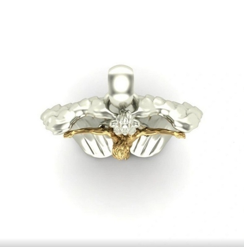 - Unique silver and gold custom religious pendant with a floral or winged design.